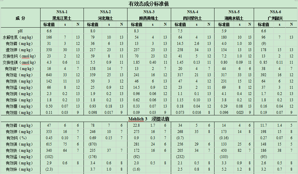 本系列六種土壤成分參比標準物質(zhì)主要用于全國耕地調(diào)查與質(zhì)量評價樣品分析的參比標準與質(zhì)量監(jiān)控; NSA系列為有效態(tài)成分,NST系列為全量成分。